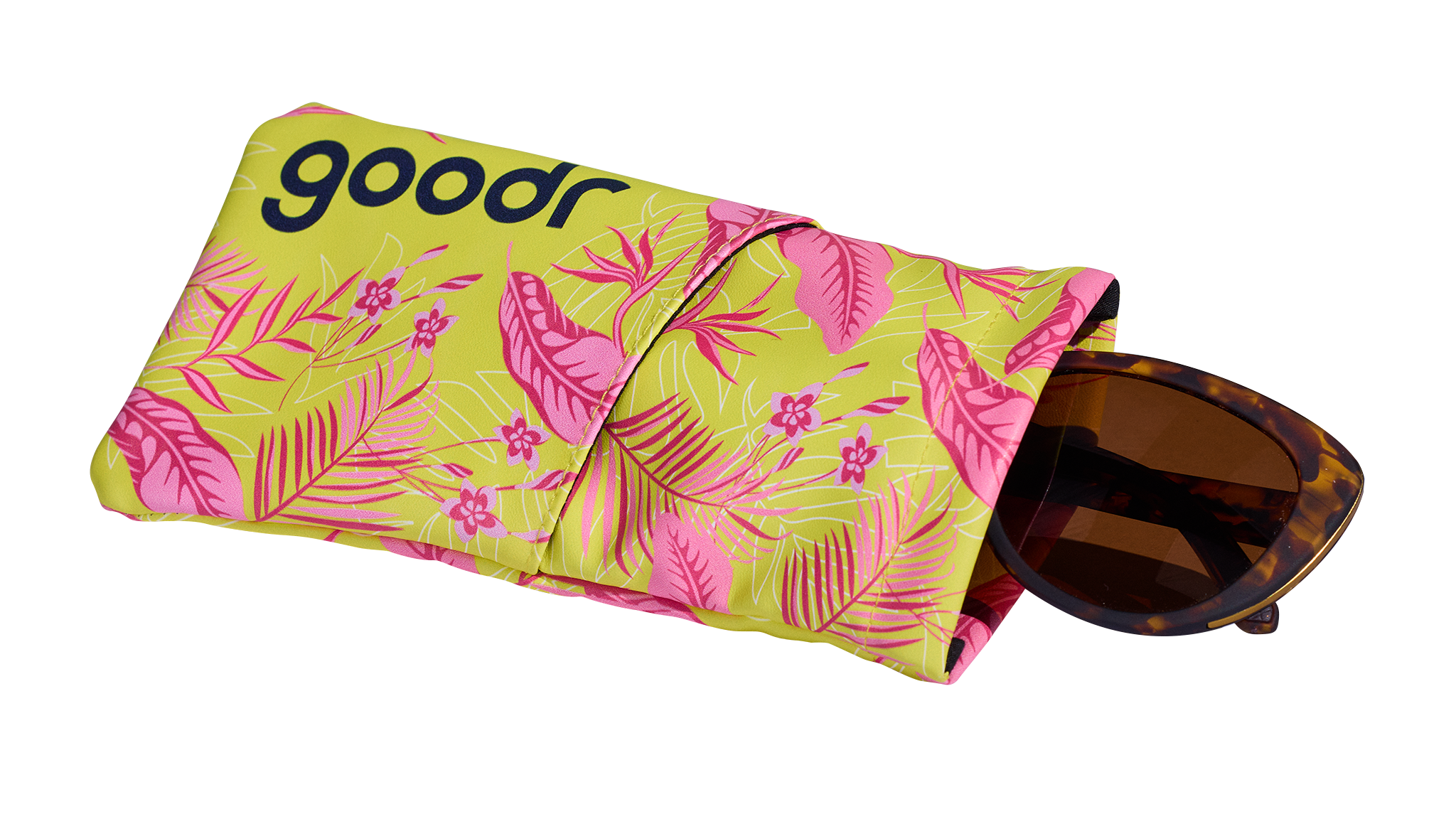 Like an adorable tropical pink & yellow sleeping bag for your shades, our Soft Landing case keeps your fave pair of sunnies safe & secure. There's no excuse for throwing 'em in a catchall with your keys by the front door anymore, ya filthy barbarian!