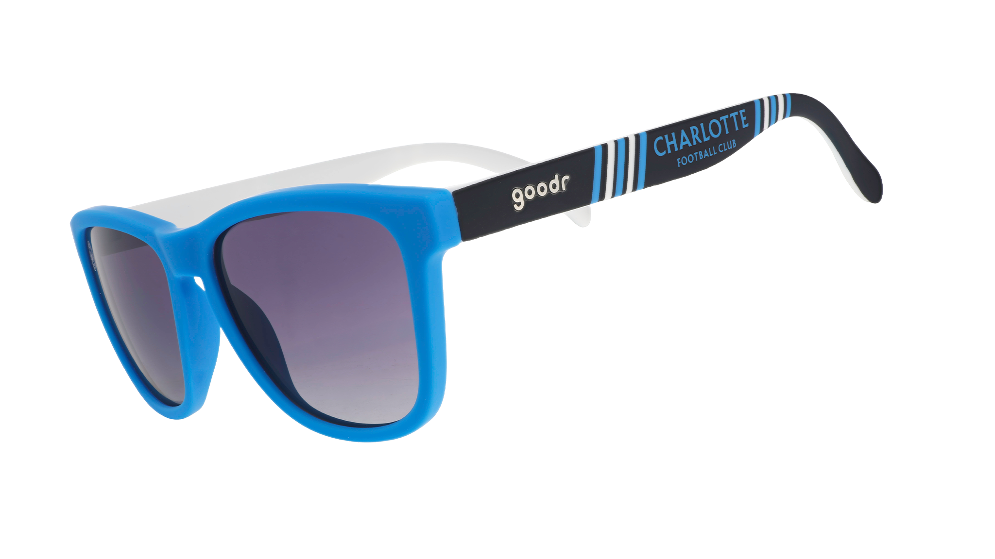 Rep Charlotte FC in black and blue sunglasses with black gradient lenses that make you look like you have your life together, even when you definitely ate pizza for breakfast. Comes with bold Major League Soccer packaging fit for royalty. For the Crown!