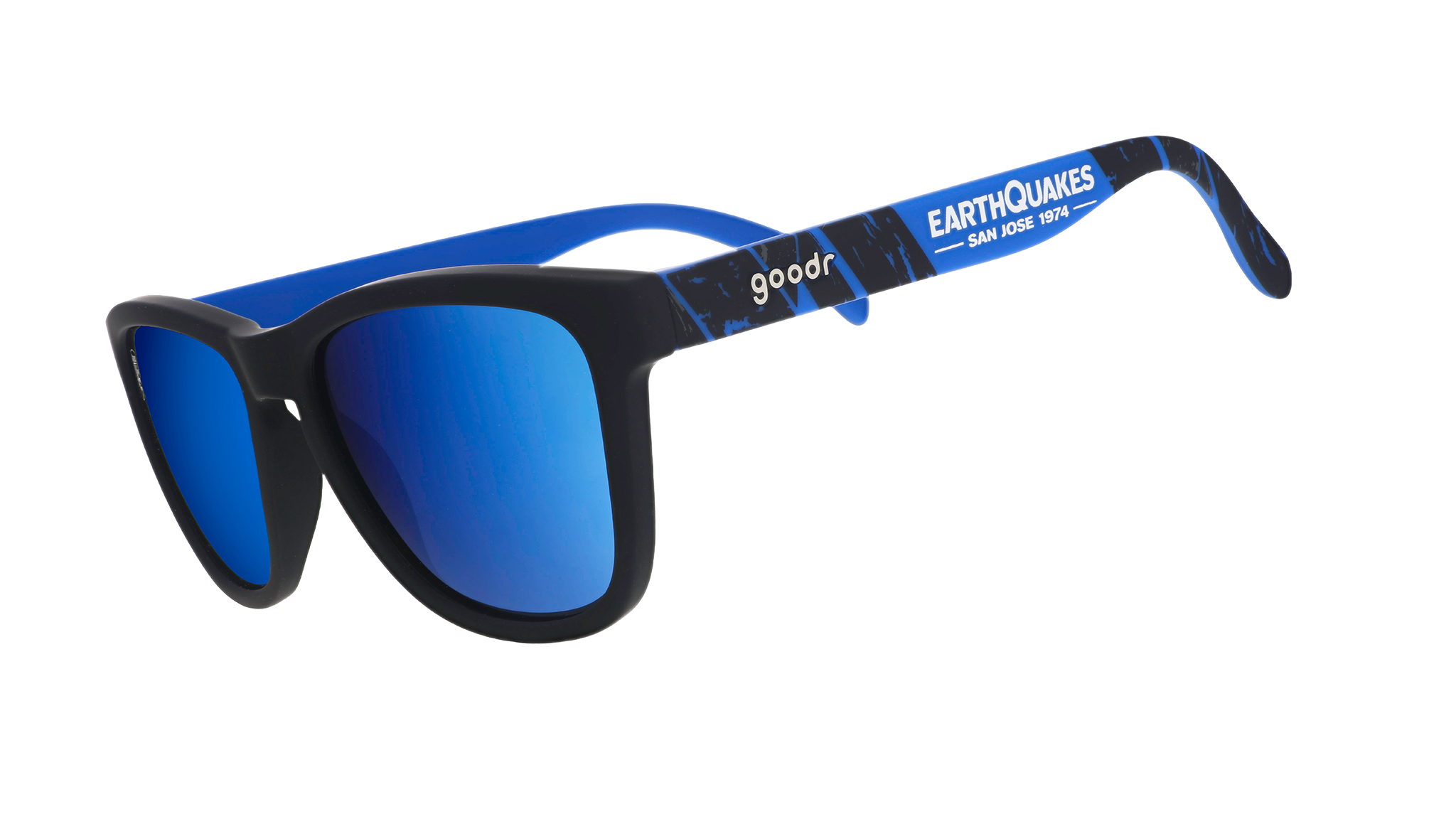 Did you feel that? There's an earthquake coming. San Jose Earthquakes, that is. And even if two blocks of the Earth's crust suddenly slip past one another, ripping the ground apart, these sunglasses won't slip or bounce. Featuring blue and black frames and blue reflective lenses. Plus, they come with Major League Soccer packaging, so your delivery person knows you're a serious fan.