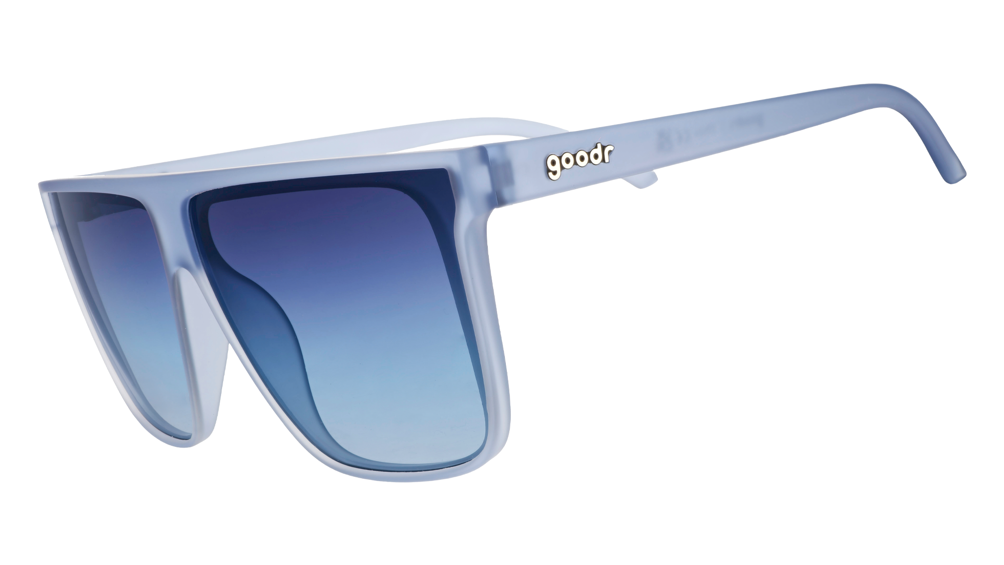 Dusty blue Fly Gs with blue gradient lenses built for all-night moves and zero slip. Oversized, bold, and ready to outlast the party, these flat-top stunners keep the vibe alive from first beat to last call. Dance hard, shine bright, and never be the first to go home.