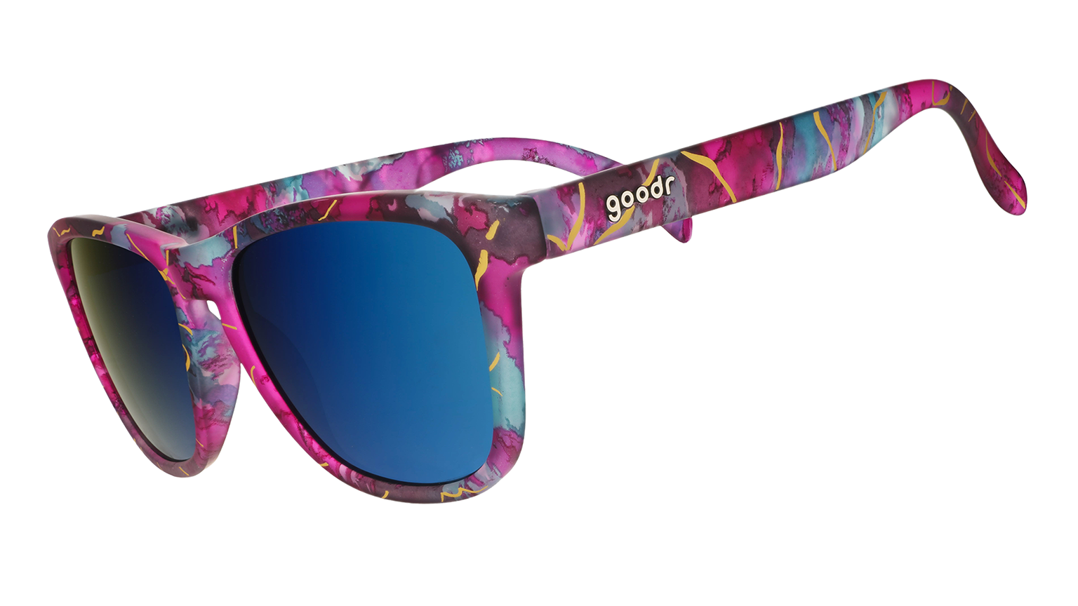 These gorgeous multi-colored, watercolor-esque OGs feature saturated shades of purple, teal, and hints of gold, along with teal reflective lenses. The design was inspired by the Japanese art of kintsugi, which celebrates the beauty in imperfection.