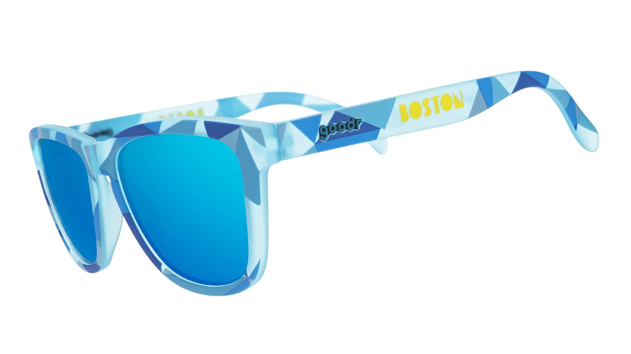 Howahyah, Boston?! Crush hills & hahhts in these limited-edition shades inspired by the most notorious marathon incline. These blue sunnies feature a geometric pattern & blue reflective lenses so everyone will know you're wicked good at runnin'!!!