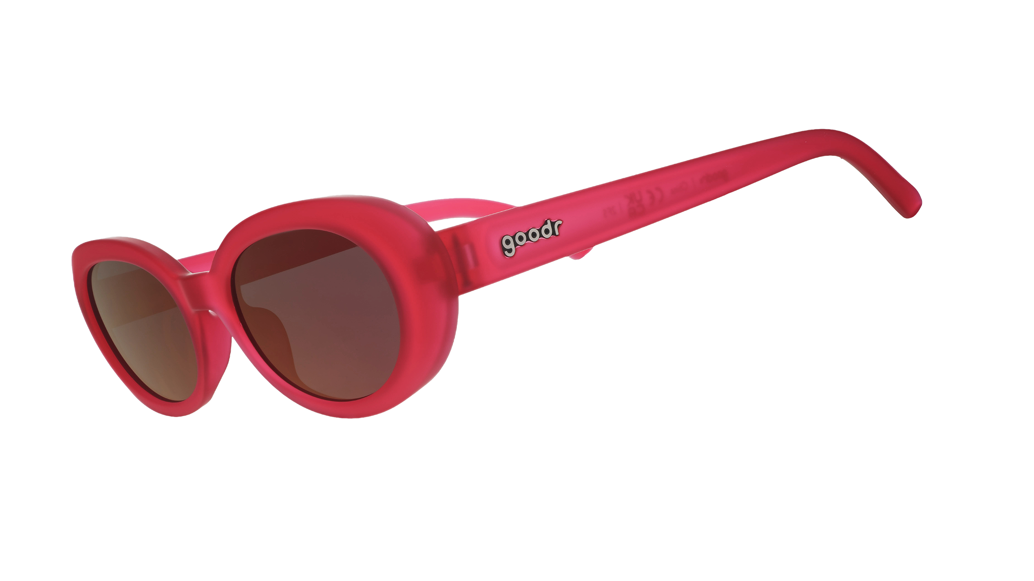 Move through space and time in style with hot pink oval sunglasses featuring red lenses. Pair them with your dance moves and shift your reality into a pink-tinted mind-bend. If you feel your soul briefly leave your body during the cha-cha, that’s normal.