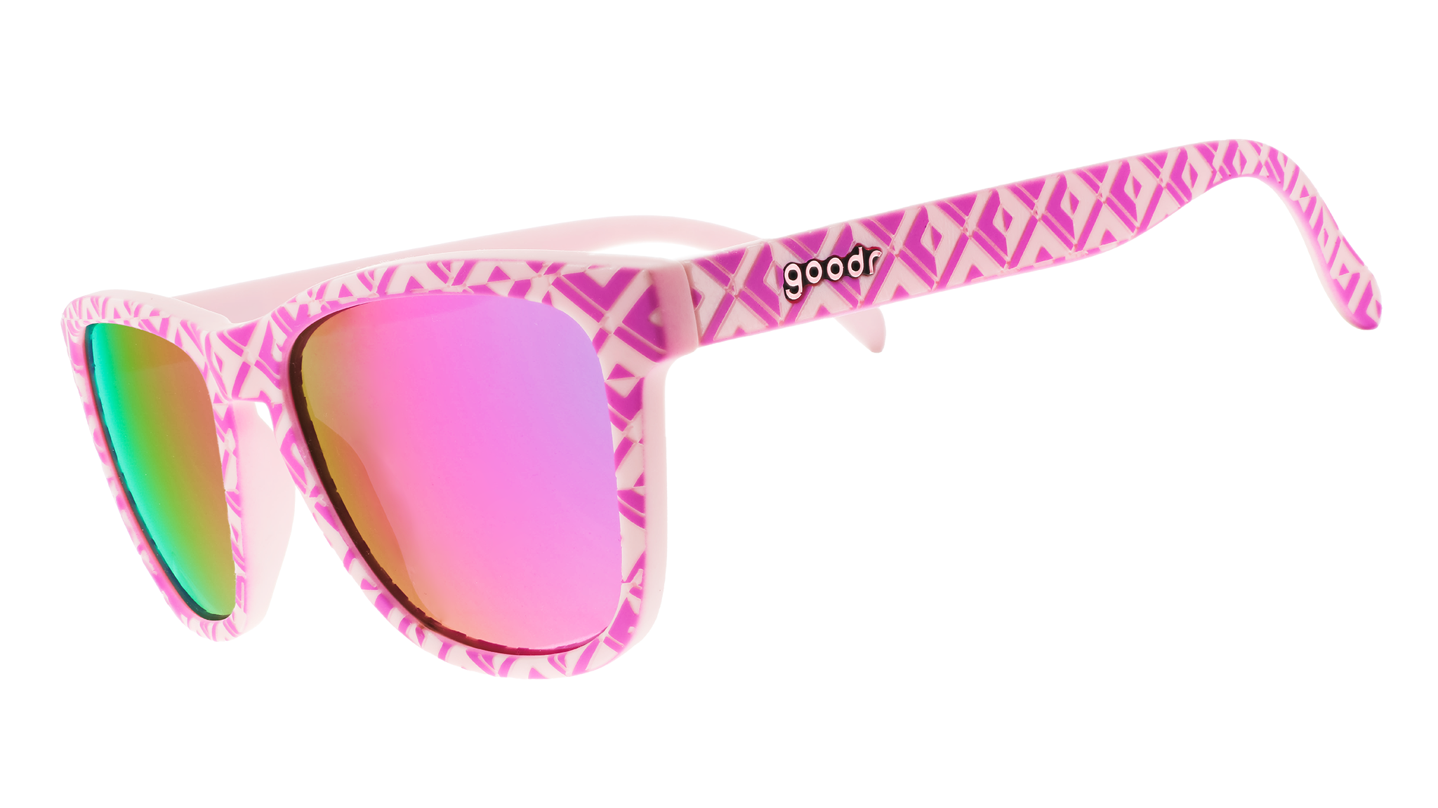 Did you grow up in a home where the only escape from the prying eyes of annoying siblings & naggy parents was the loo?! If those tiled walls could talk! These textured, limited pink tile shades w/ purple-pink reflective lenses will keep your secrets.