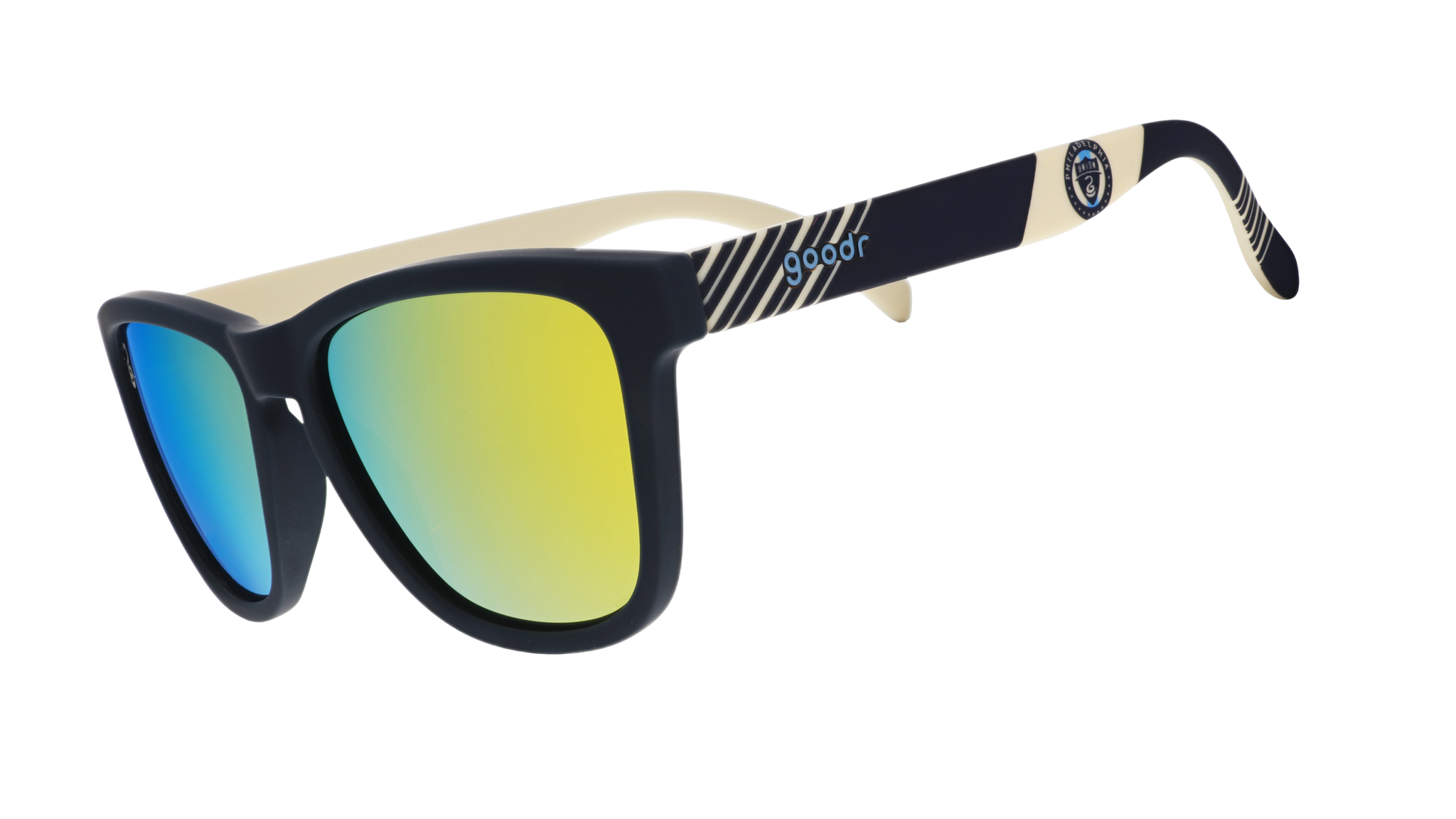 Philadelphia Union sunglasses that bring the brotherly love. These navy and gold frames with gold reflective lenses shine harder than a stoppage-time winner. Perfect for repping in the River End or trash-talking your group chat. MLS packaging included. Doop, doop, doop, da da doop, doop, doop...